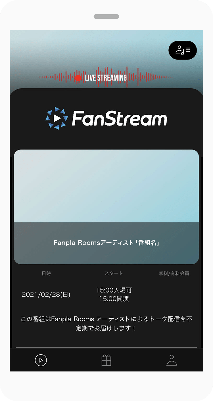 専用アプリ「FanStream」で会員限定生配信を視聴できます。